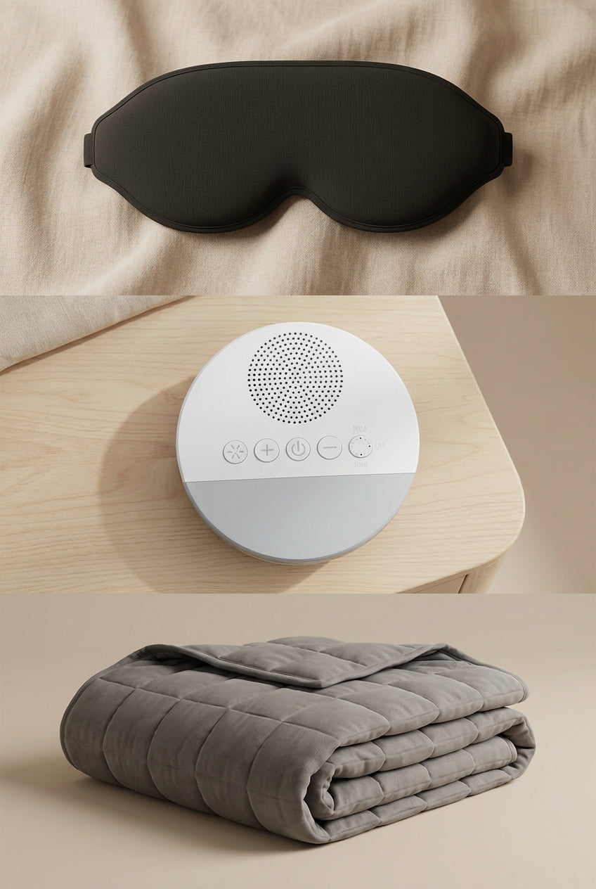 Pack Enveloppement–Masque de sommeil – Machine à bruit blanc – Couverture lestée